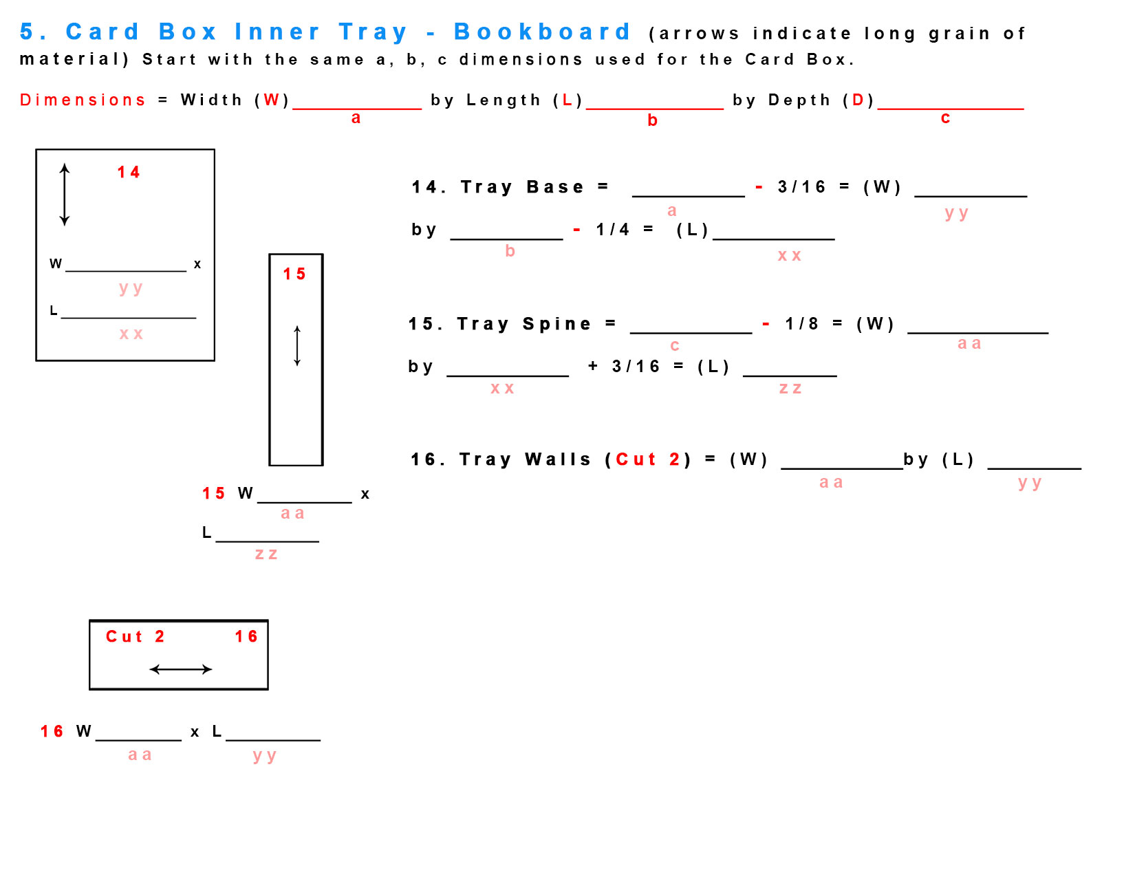 There are six worksheets in both Imperial and Metric measurements – four for the box itself and two for the inner tray, which is optional.