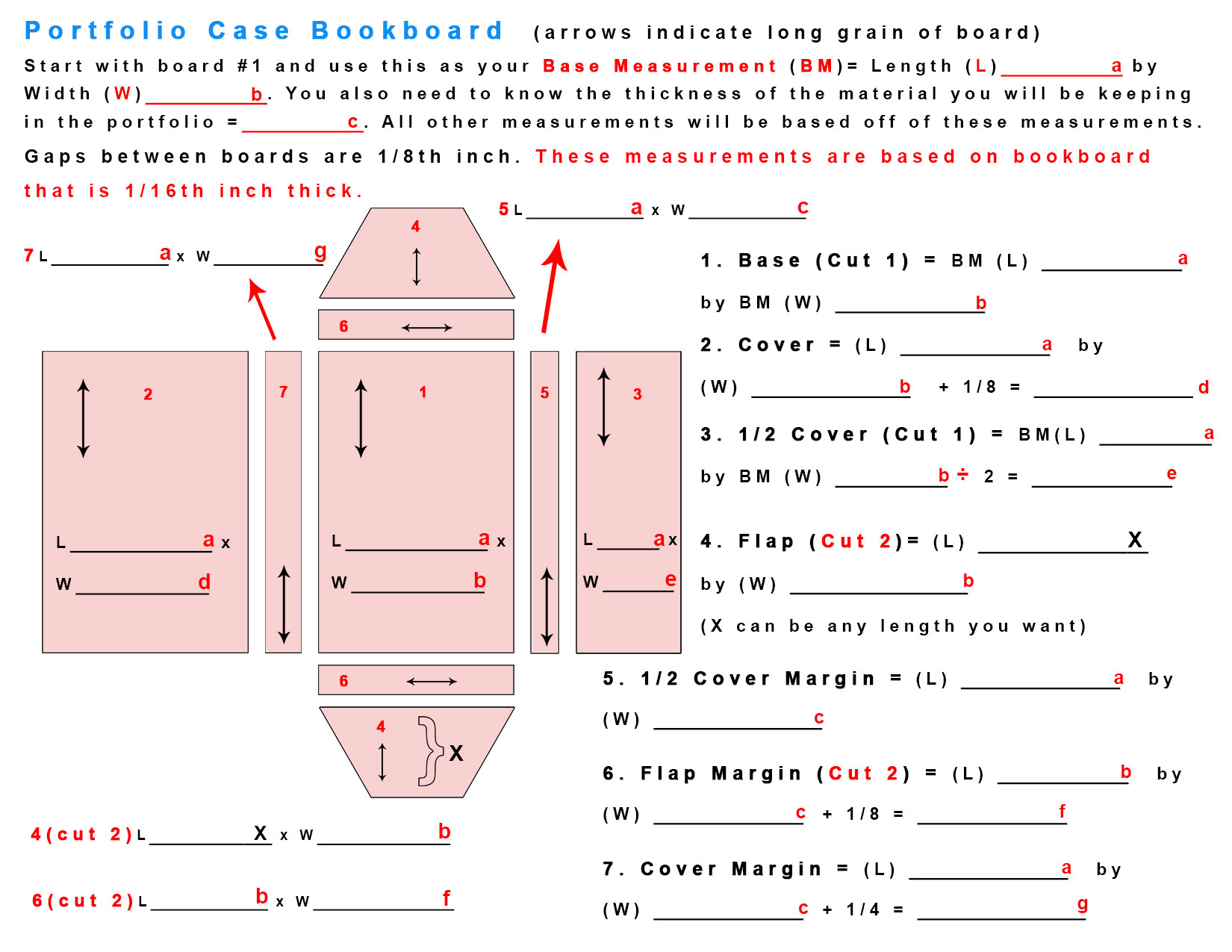 Finish out the rest of this worksheet in the same manner and you will have all the measurements for the materials you need to cut for your portfolio case.